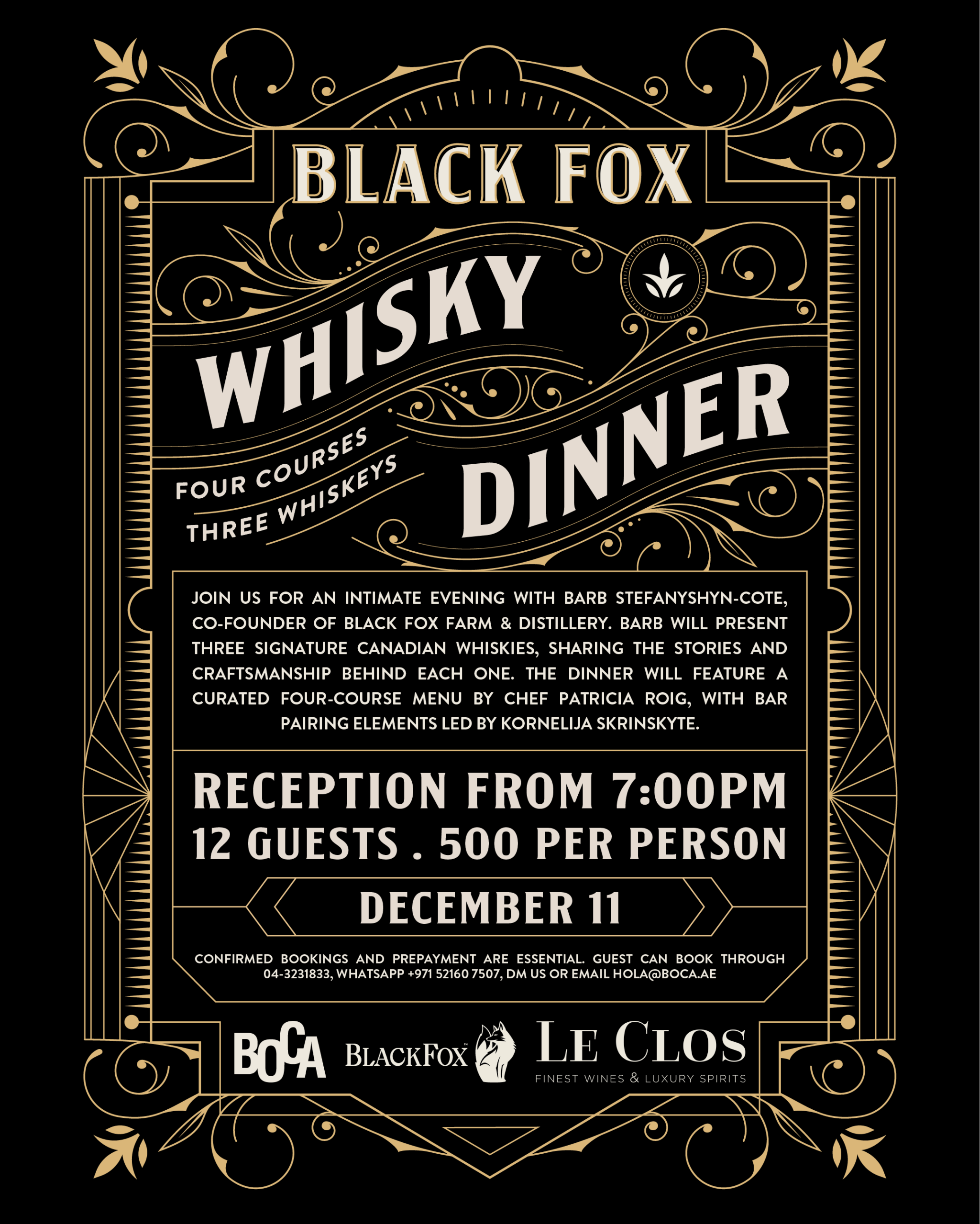 Book through 04-3231833, WhatsApp +971 52 160 7507, or email hola@boca.ae