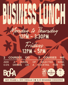 Book now through our corporate WhatsApp using this link, through the phone 043231833 , email hola@boca.ae or directly through this link.